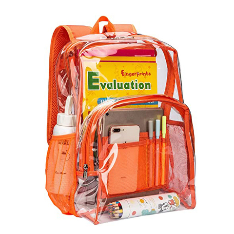 Sac à dos multi-poches double couche transparent de couleur unie Sacs de livres transparents étanches de grande capacité